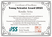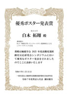 優秀ポスター賞 触媒学会2025年度高難度選択酸化反応研究会シンポジウム Ru/C触媒を用いたシクロヘキサン電解酸化によるシクロヘキサノンの合成 |